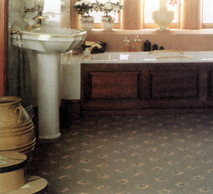 Например, блестящая поверхность пола в гостиной создает впечатление ухоженности и чистоты, тогда как ковер делает ванную комнату роскошной. Светлая и просторная комната в сельском стиле прекрасно дополняется домашним очагом и плитами настила Ковер может создать эффект роскоши в ванной. В данном случае использован тканый ковер, в котором 80% шерсти и 20% нейлона.